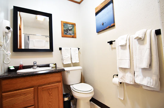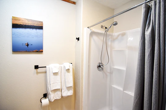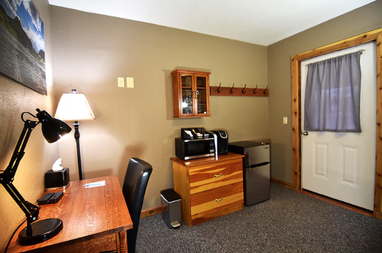 Room #1 accommodates up to two guests with a deluxe queen bed. Large, wild, trout live 100 steps from your room. Walk easily from your comfortable room to The Trout Shop and all the local services Craig, Montana, has to offer.