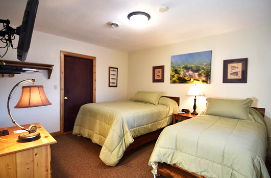 Room #2 accommodates up to two guests with a queen and single bed. Large, wild, trout live 100 steps from your room. Walk easily from your comfortable room to The Trout Shop and all the local services Craig, Montana, has to offer.